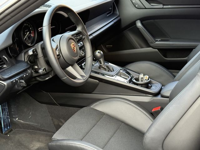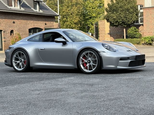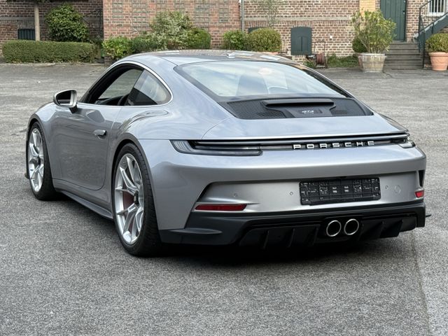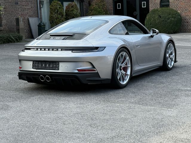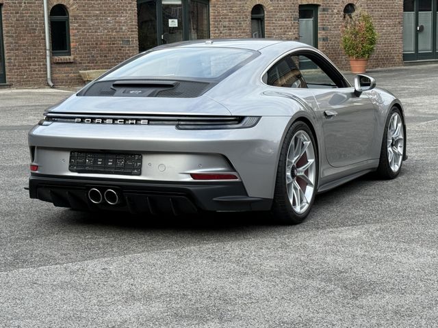 - GT3 Sportlenkrad mit Multifunktion und Mode-Schalter. Lenkradkranz mit 12-Uhr—, Markierung und beledertem Airbag-Modul in Glattleder schwarz, Touring-Paket, Änderungen gegenüber der Serienausstattung 911 GT3:, Exterieur:, Entfall feststehender Heckflügel. Automatisch ausfahrbarer Heckspoiler, eigenständiges Heckdeckelgitter inklusive Plakette mit Schriftzug ''GT3 touring'' und aerodynamischer Abrisskante (Gurney flap). Seitenscheibenleisten Aluminium hochglanzeloxiert und Endrohrblenden silberfarben (hochglanz). ''PORSCHE'' Schriftzug in Heckleuchtenband in Lightsilver., Radnabenabdeckungen mit zweifarbigem Porsche Wappen., Interieur:, Ausstattung in Leder anstelle Race-Tex:, Lenkradkranz, Schalthebel / PDK Wählhebel inklusive Schaltsack, Armauflage Türverkleidung, Türzuziehgriff, Armauflage Deckel Ablagefach Mittelkonsole. Nähte in Schwarz anstelle GT-silber, Dachhimmel in Stoff Schwarz., Sportsitz Plus mit Sitzmittelbahn partiell in Stoff schwarz (Vollschalensitz mit Sitzmittelbahn komplett in Stoff schwarz) und Kopfstützen mit geprägtem Porsche Wappen. Türeinstiegsblenden, Zierblenden Schalttafel und Mittelkonsole aus gebürstetem Aluminium in Schwarz., Ausstattung GT3 mit Touring-Paket